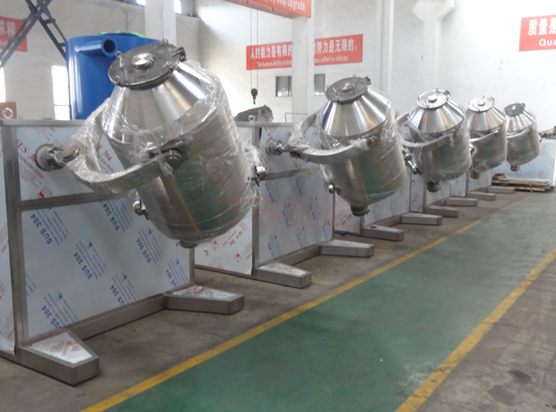 ? 混料器具有三維運(yùn)動,從而使物料在流動,剪切,平移,擴(kuò)散的作用下,使其由集聚到分散狀態(tài)并完成互相摻雜的過程,保證了物料混合均勻,均勻度可達(dá)999%以上。普通混合機(jī),物科在容器內(nèi)只作分合的簡單運(yùn)動,效率氏,混合質(zhì)量差;