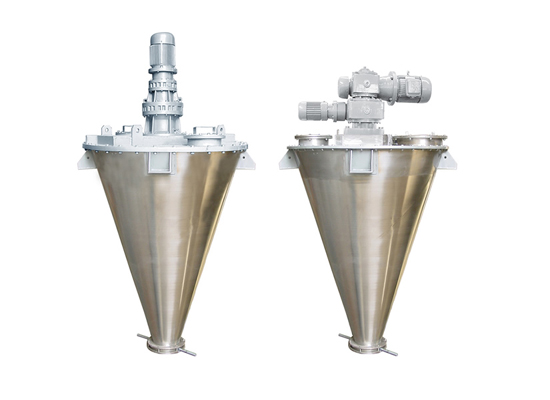 混合機根據(jù)物料性質、啟動方式、以及工藝要求配置不同功率、不同能力的驅動裝置。 雙螺旋錐形混合機裝載專用的雙輸出減速機組合箱,采用擺線針輪、齒輪、蝸輪蝸桿形式組合定制而成。