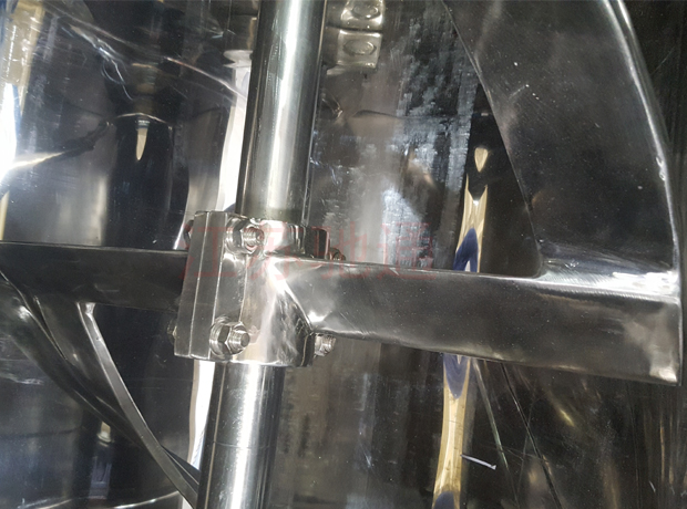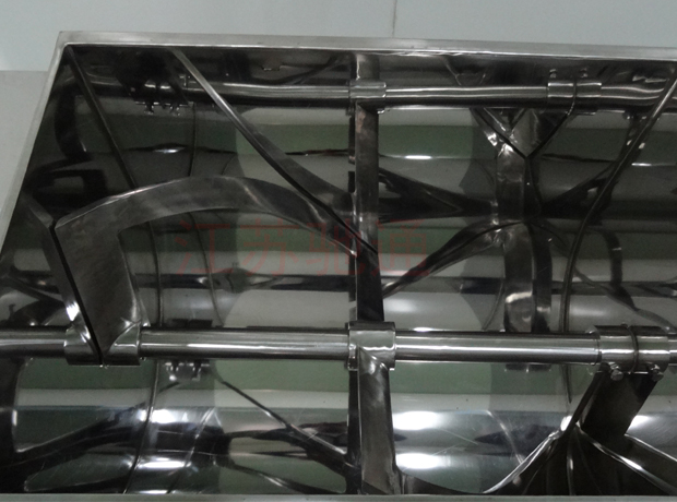 本機(jī)與物料接觸處均采用不銹鋼制造,槳葉與桶身間隙小,混合無(wú)死角,攪料軸兩端設(shè)有密封裝置,能防止物料外瀉。